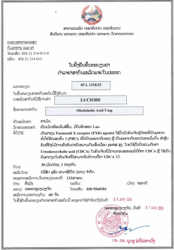 Brand/Manufacturer: Lucius Pharmaceuticals (Laos) - Note: This is a generic/manufactured version. The original brand name is Ocaliva®.