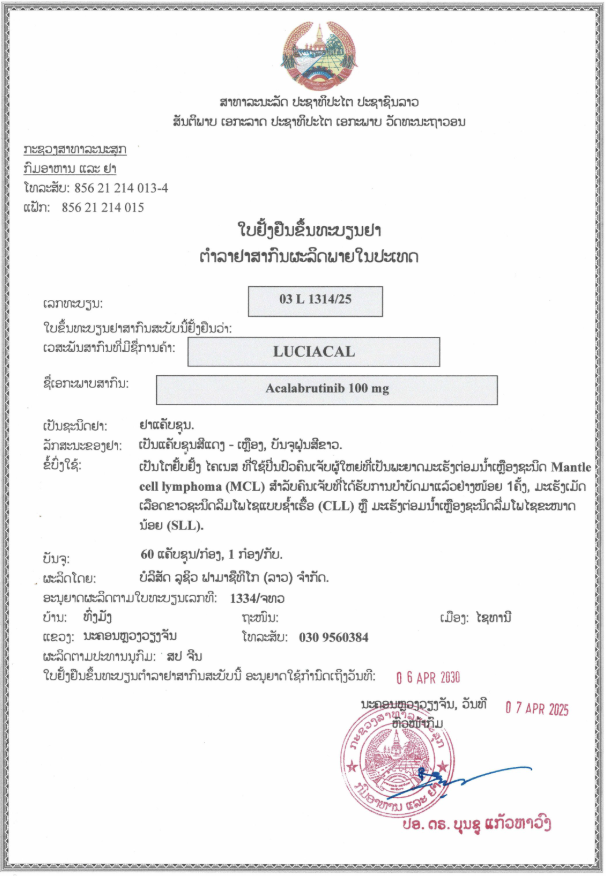 Lucius Acalabrutinib is a prescription medicine belonging to a class of drugs called Bruton's tyrosine kinase (BTK) inhibitors. It works by blocking a specific protein (BTK) that helps cancer cells, particularly certain blood cancer cells, to survive and multiply.
