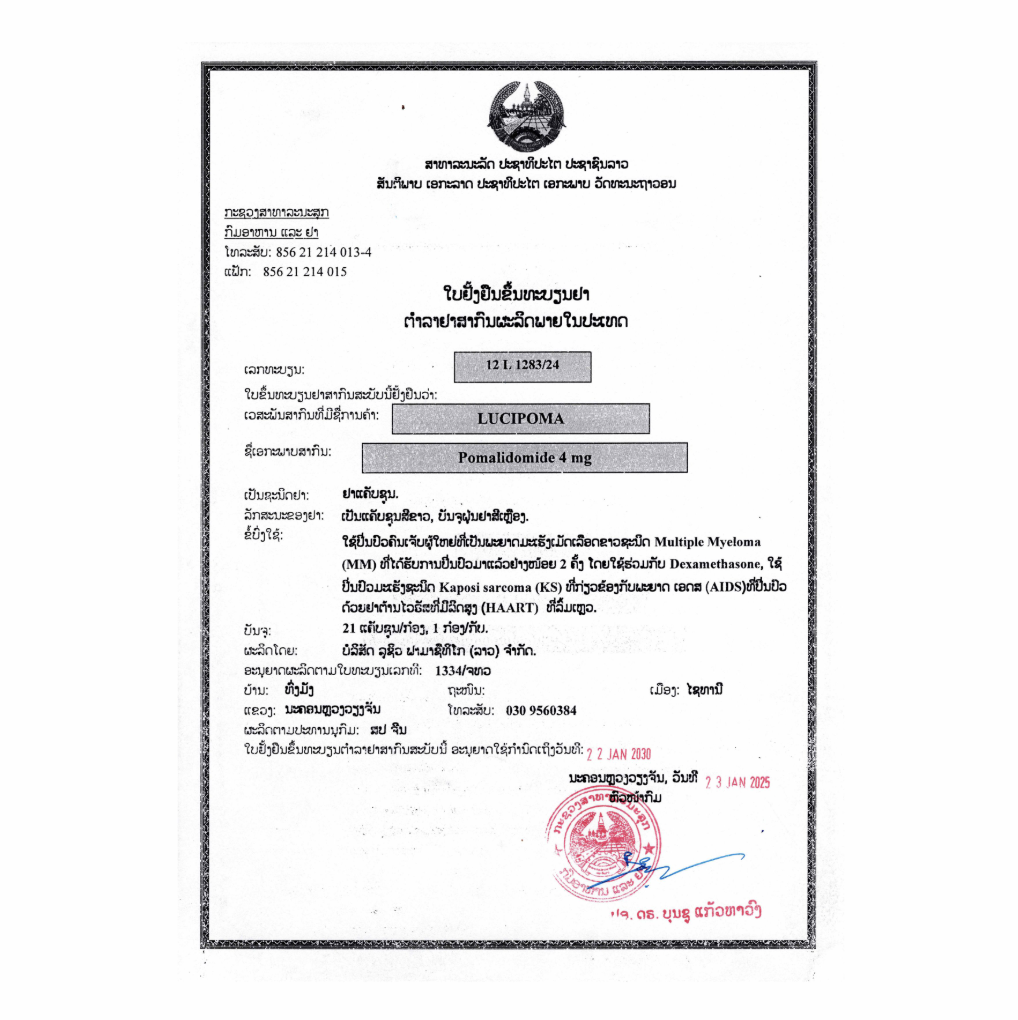 LuciPoma is a thalidomide analogue indicated, for the treatment of adult patients:
