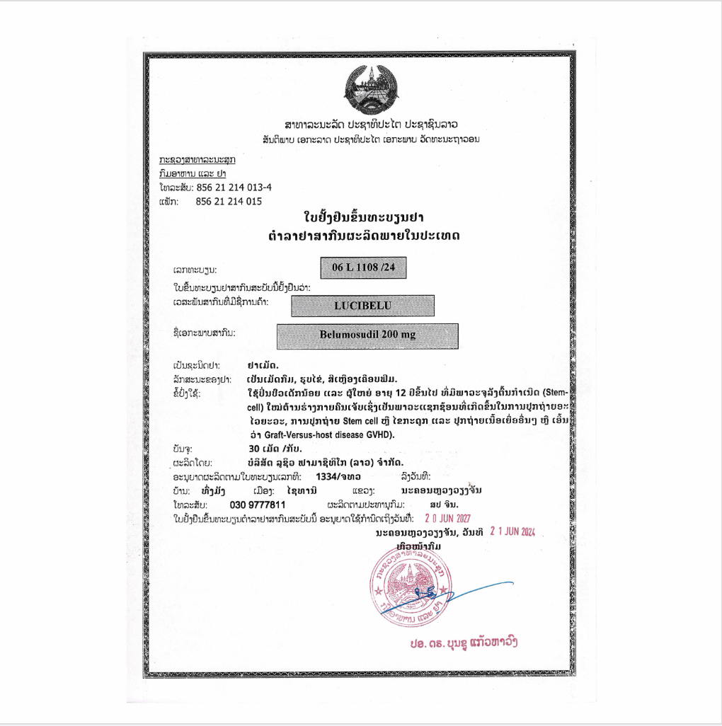 LuciBelu is a kinase inhibitor indicated for the treatment of adult and pediatric patients 12 years and older with chronic graft-versus-host disease (chronic GVHD) after failure of at least two prior lines of systemic therapy.