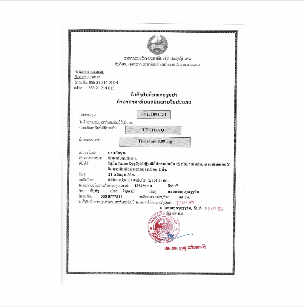 LuciTivo is a kinase inhibitor indicated for the treatment of adult patients with relapsed or refractory advanced renal cell carcinoma (RCC) following two or more prior systemic therapies.