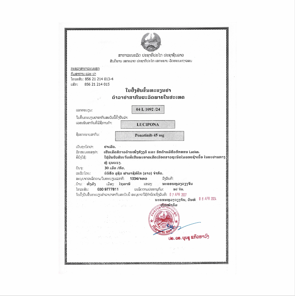 Limitations of Use: LuciPona is not indicated and is not recommended for the treatment of patients with newly diagnosed CP-CML.