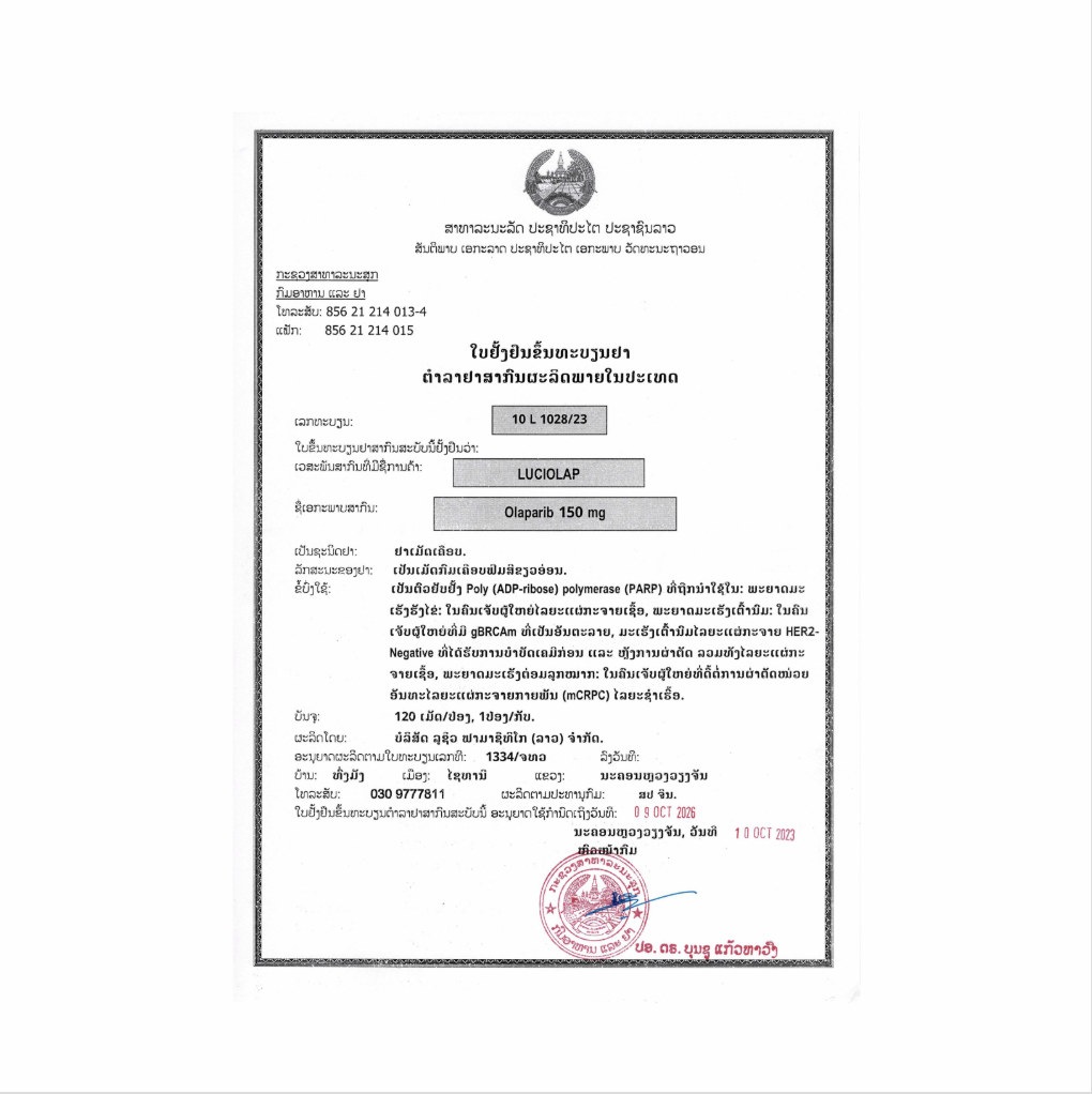 LuciOlap is a poly (ADP-ribose) polymerase (PARP) inhibitor indicated: