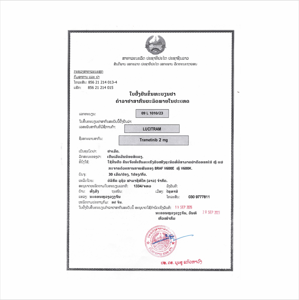 LuciTram is a kinase inhibitor indicated as a single agent for the treatment of BRAF-inhibitor treatment-naïve patients with unresectable or metastatic melanoma with BRAF V600E or V600K mutations.