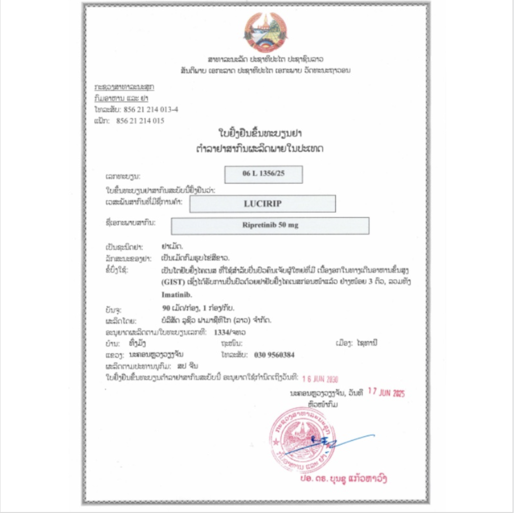 LuciRip is a kinase inhibitor indicated for the treatment of adult patients with advanced gastrointestinal stromal tumor (GIST) who have received prior treatment with 3 or more kinase inhibitors, including imatinib.
