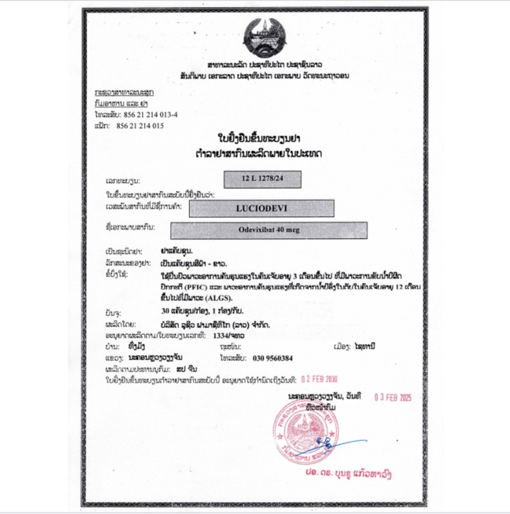 LuciOdevi 是一种回肠胆汁酸转运蛋白 (IBAT) 抑制剂,适用于:
