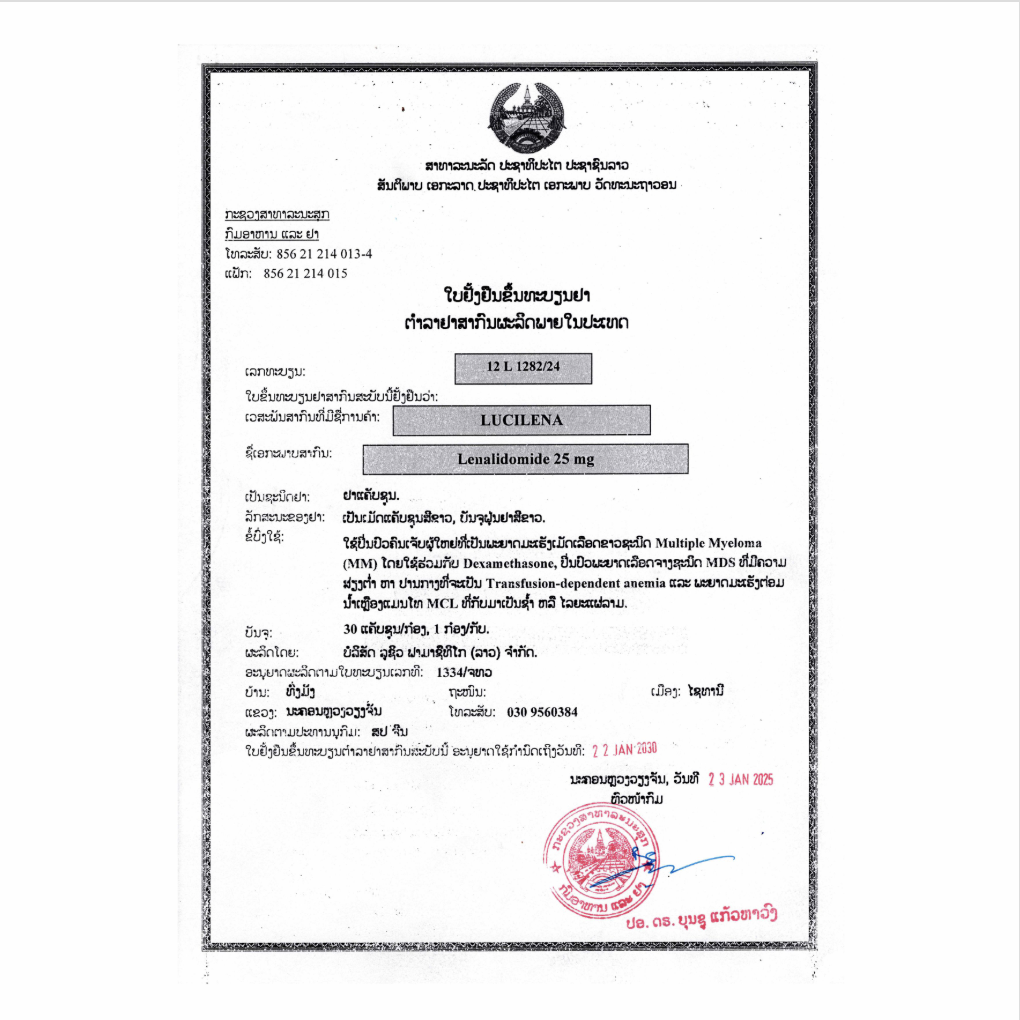 LuciLena 是一种沙利度胺类似物,适用于治疗患有以下疾病的成人患者: