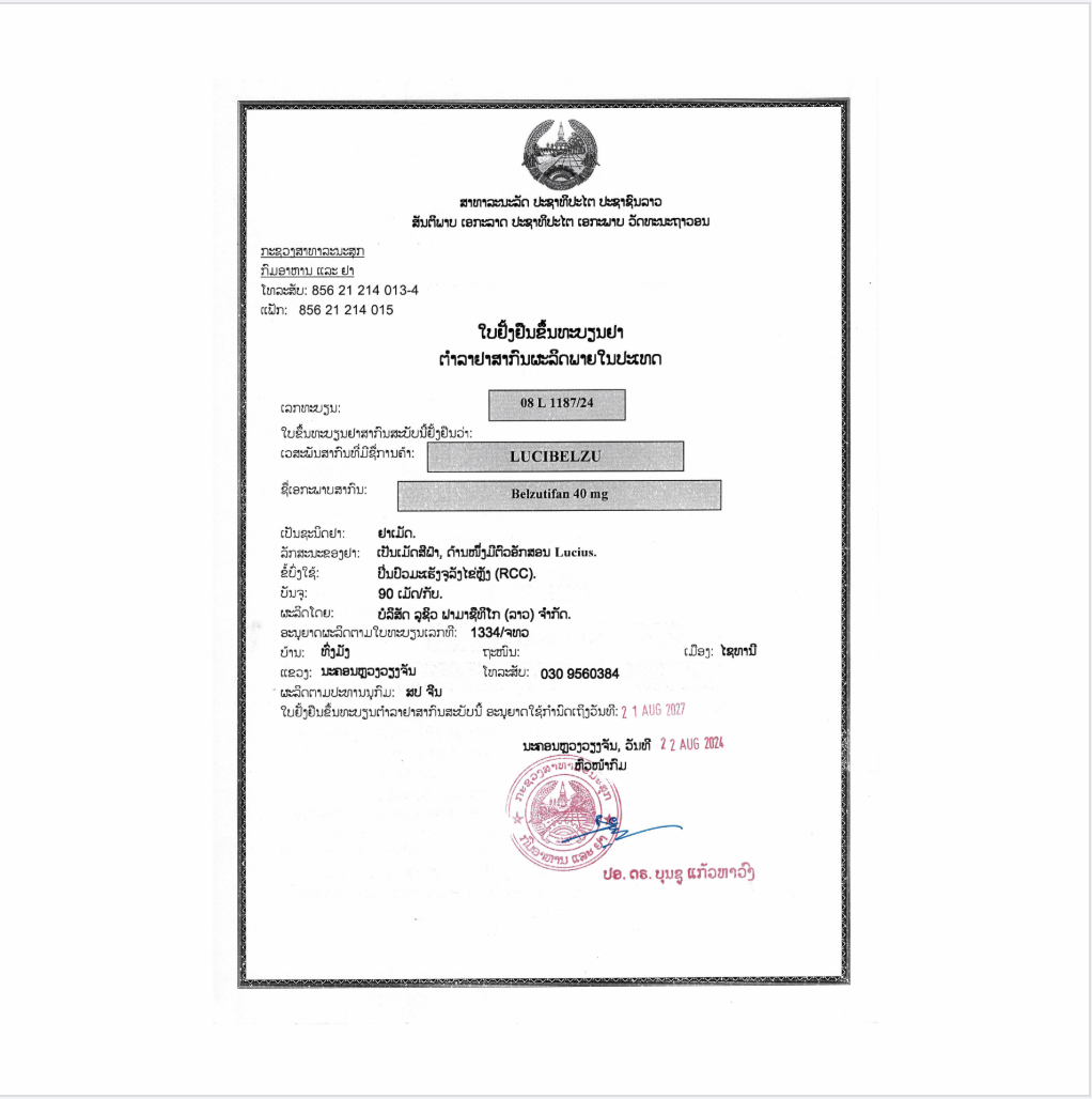 •用于治疗患有von Hippel-Lindau(VHL)疾病的成年患者,这些患者需要治疗相关的肾细胞癌(RCC)、中枢神经系统(CNS)血管母细胞瘤或胰腺神经内分泌肿瘤(pNET),不需要立即手术。