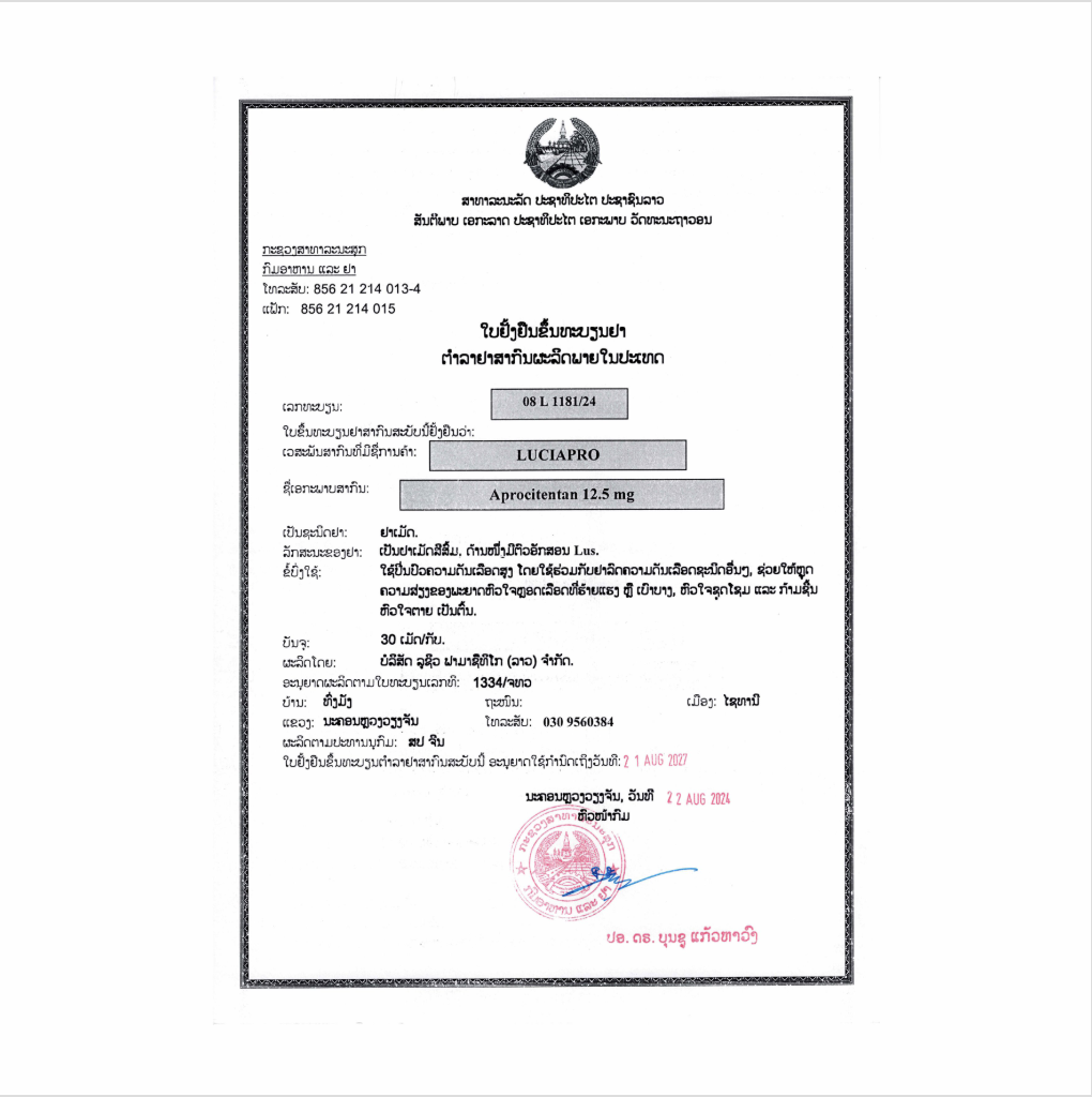 生 产 商:卢修斯制药(老挝)有限公司