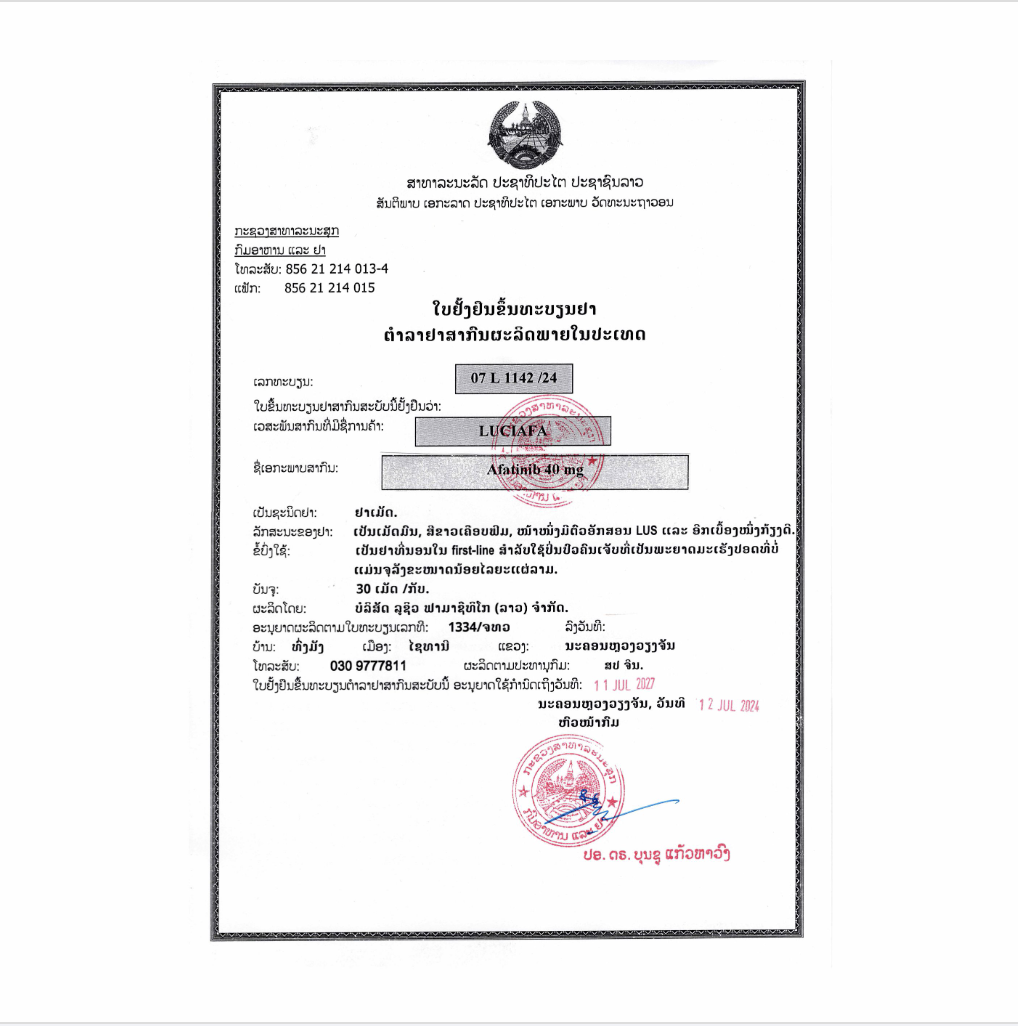 使用限制:LuciAfa在肿瘤有耐药性EGFR突变的患者中的安全性和有效性尚未确定。