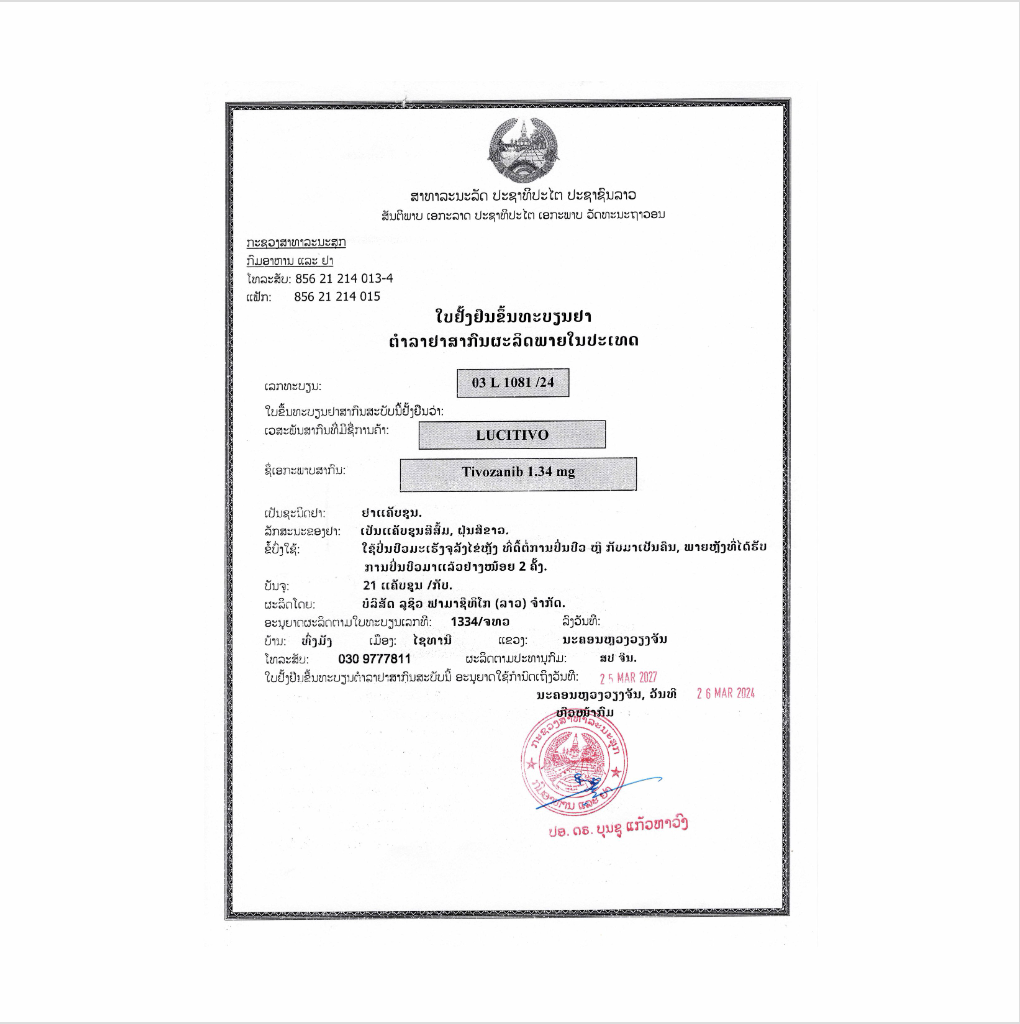 LuciTivo是一种激酶抑制剂,用于治疗已接受过两次或两次以上全身治疗的复发或难治性晚期肾细胞癌(RCC)的成年患者。