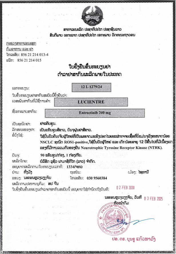 恩曲替尼是一种选择性酪氨酸激酶抑制剂,靶向NTRK1/2/3、ROS1和ALK激酶。通过抑制这些激酶的活性,阻断肿瘤细胞增殖信号通路,诱导肿瘤细胞凋亡。