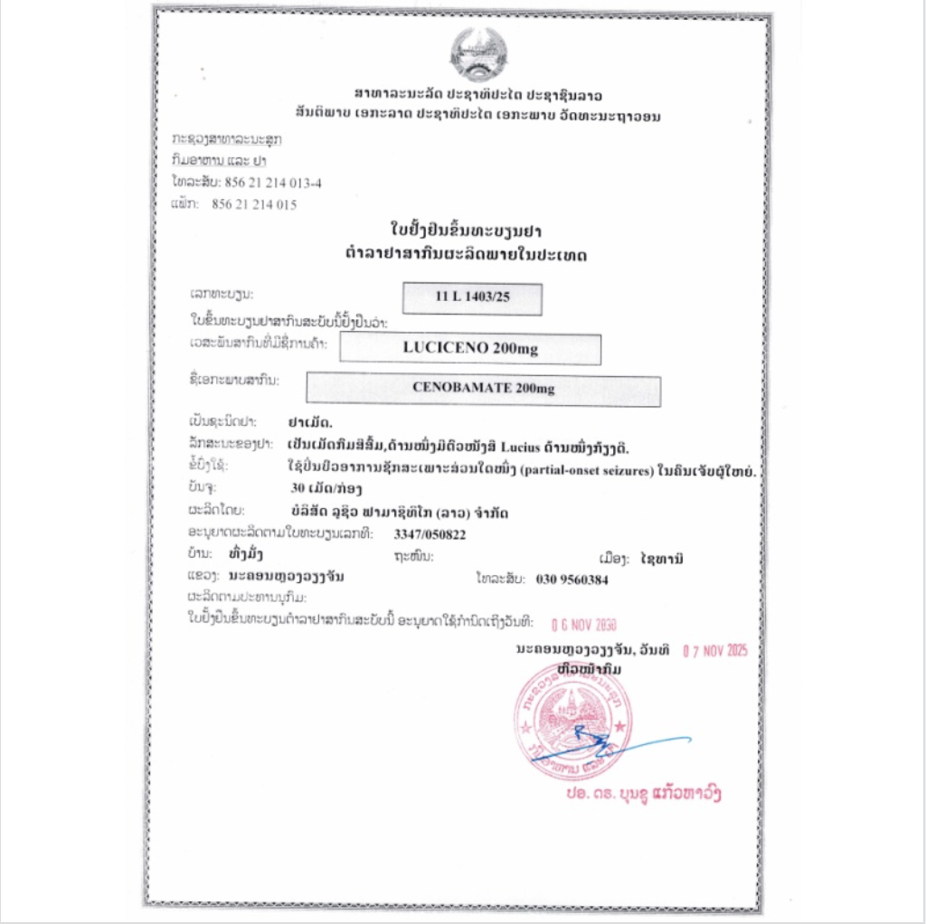 LuciCeno 适用于治疗成年患者的部分性癫痫发作。