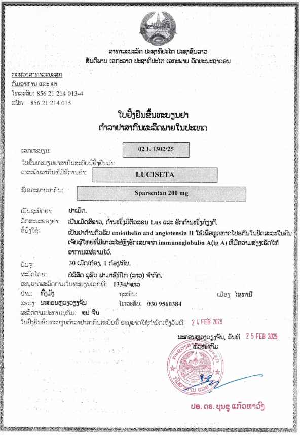 The Lucius Sparsentan unit is a first-in-class, orally bioavailable dual endothelin angiotensin receptor antagonist engineered for targeted proteinuria reduction in IgA nephropathy. It is indicated for: