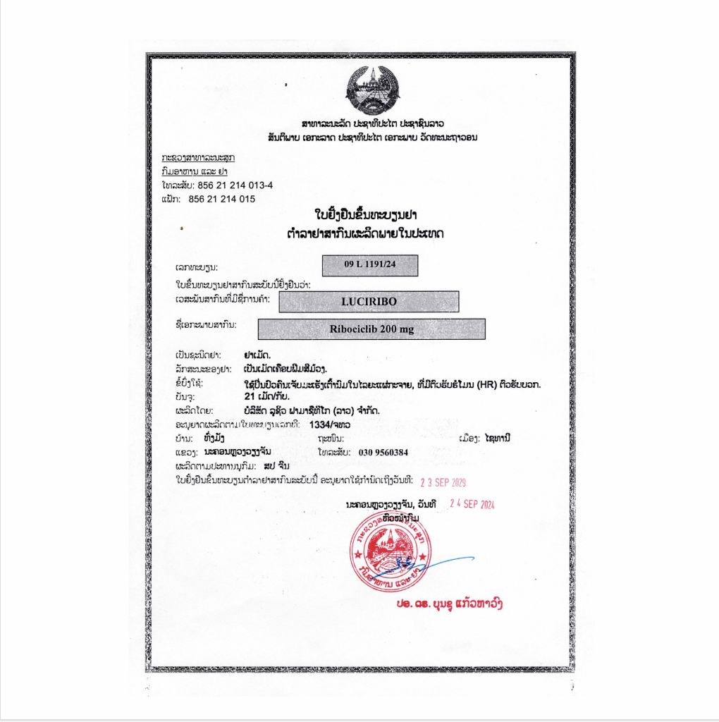 LuciRibo is a kinase inhibitor indicated for the treatment of adult patients with hormone receptor (HR)-positive, human epidermal growth factor receptor 2 (HER2)-negative advanced or metastatic breast cancer in combination with: