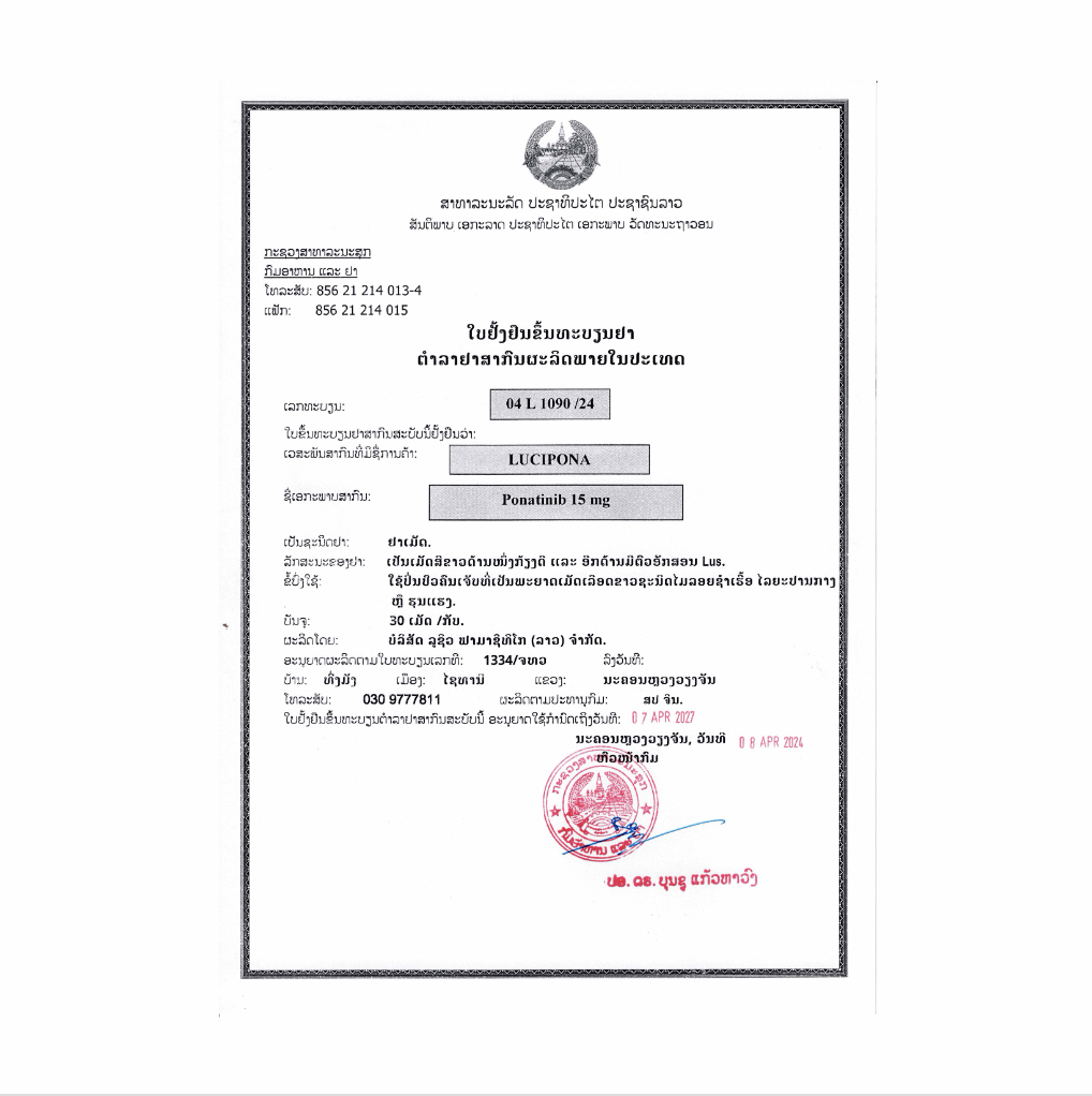 Limitations of Use: LuciPona is not indicated and is not recommended for the treatment of patients with newly diagnosed CP-CML.