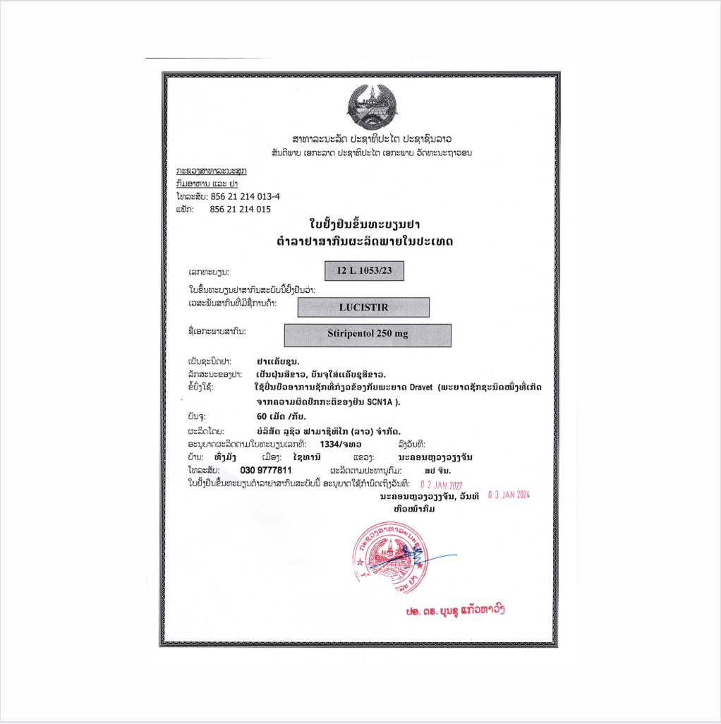 LuciStir is indicated for the treatment of seizures associated with Dravet syndrome (DS) in patients taking clobazam who are 6 months of age and older and weighing 7 kg or more.
