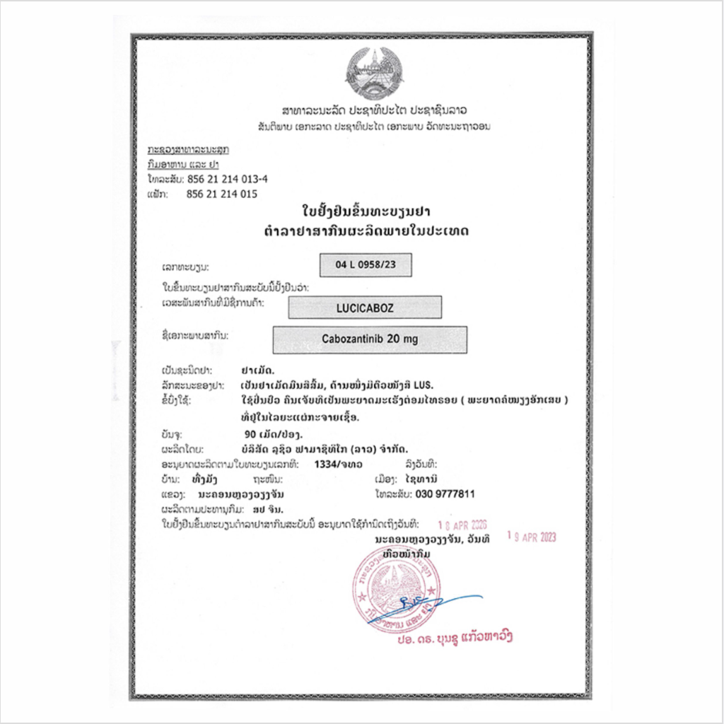 LuciCaboz is a kinase inhibitor indicated for the treatment of