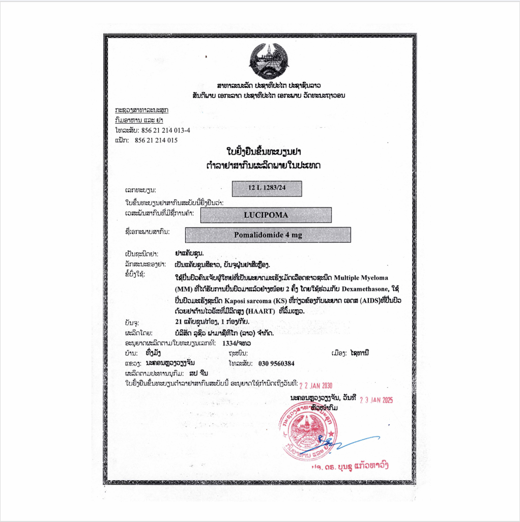 LuciPoma 是一种沙利度胺类似物,适用于治疗成人患者: