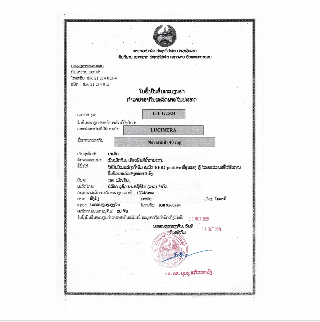 • LuciNera 与卡培他滨联合使用时:腹泻、恶心、呕吐、食欲下降、便秘、疲劳/乏力、体重下降、头晕、背痛、关节痛、尿路感染、上呼吸道感染、腹胀、肾功能损害和肌肉痉挛。