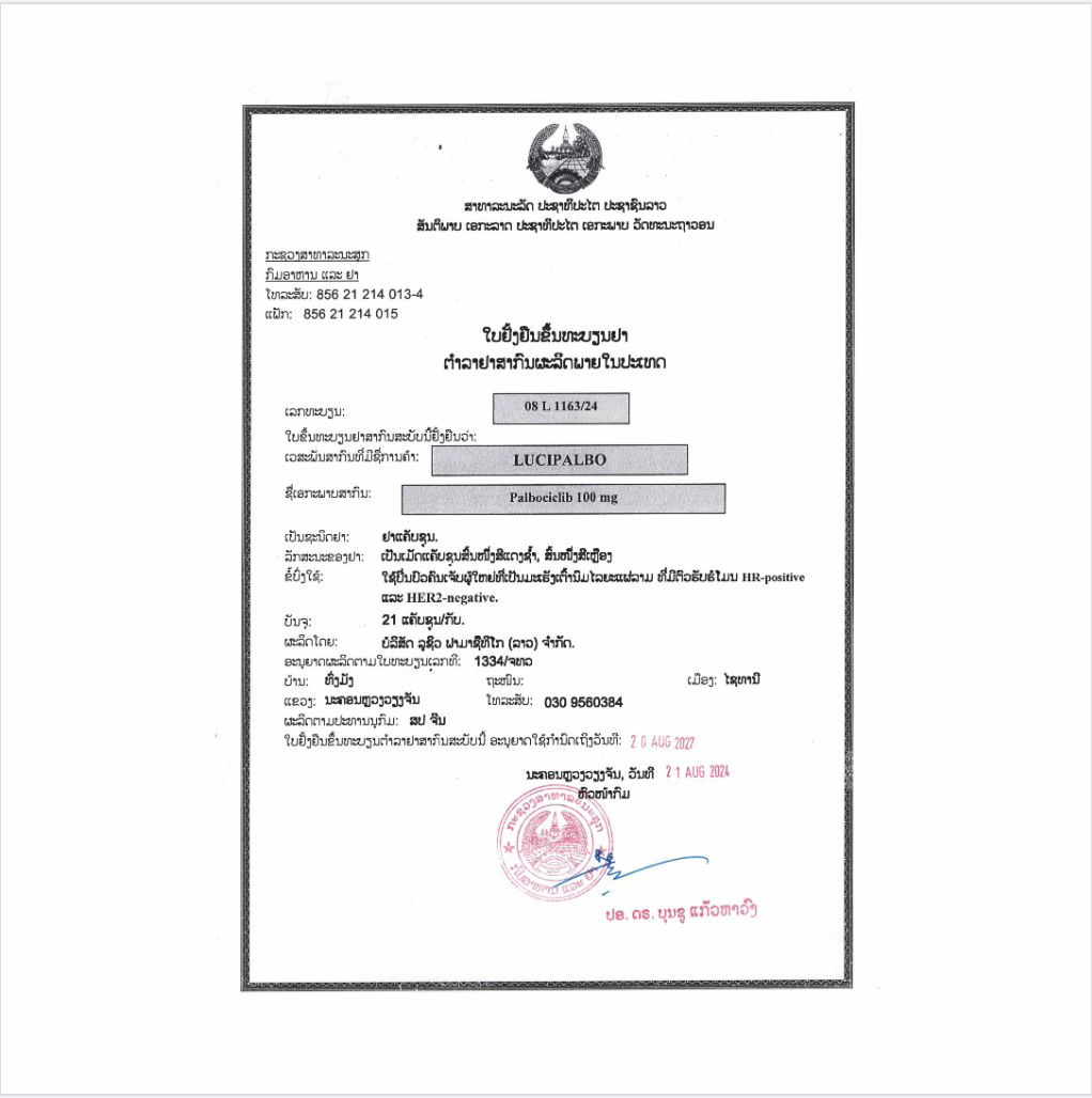 LuciPalbo是一种激酶抑制剂,用于治疗激素受体(HR)阳性、人表皮生长因子受体2(HER2)阴性的晚期或转移性乳腺癌的成年患者,并结合: