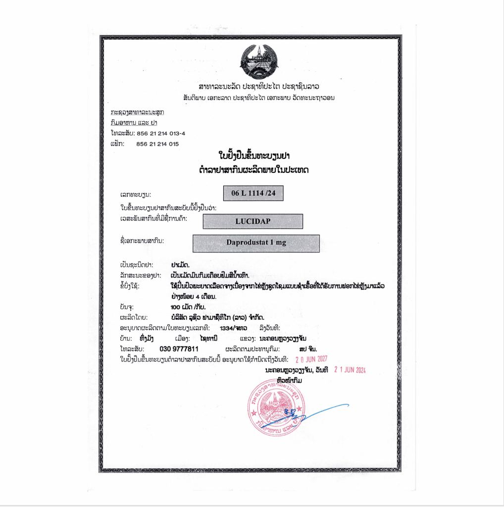 • 肝功能不全:中度肝功能不全(Child-Pugh B 级)患者应降低起始剂量。重度肝功能不全(Child-Pugh C 级)患者不建议使用LuciDap。