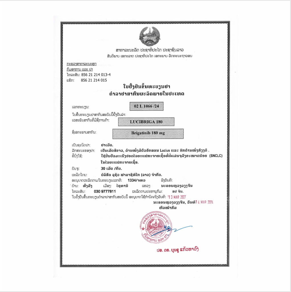 LuciBriga是一种激酶抑制剂,用于治疗经 FDA 批准的检测方法检测为间变性淋巴瘤激酶(ALK)阳性的转移性非小细胞肺癌(NSCLC)的成年患者。