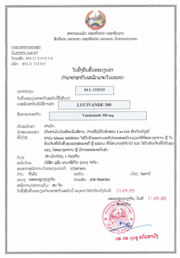 名称: 老挝卢修斯制药(Lucius Pharmaceutical Co., Ltd.)