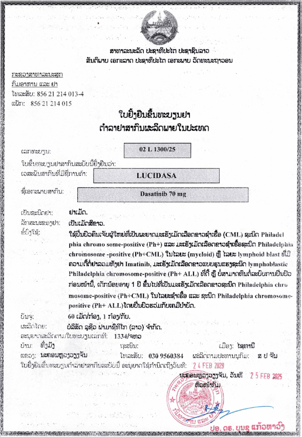 达沙替尼是一种酪氨酸激酶抑制剂,可抑制BCR-ABL激酶和SRC家族激酶,从而抑制白血病细胞增殖。
