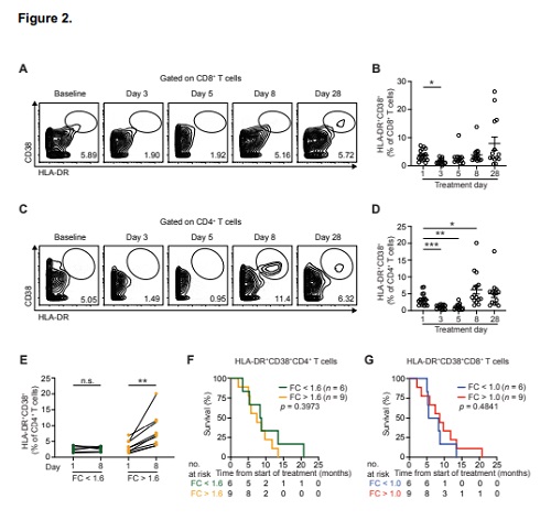 值得注意的是,该研究也没有发现CD8阳性细胞激活的一致证据,也没发现T细胞激活与预后之间的关联。这些发现与临床前研究相矛盾,临床前研究显示CD40激动剂引起的T细胞激活与预后相关。